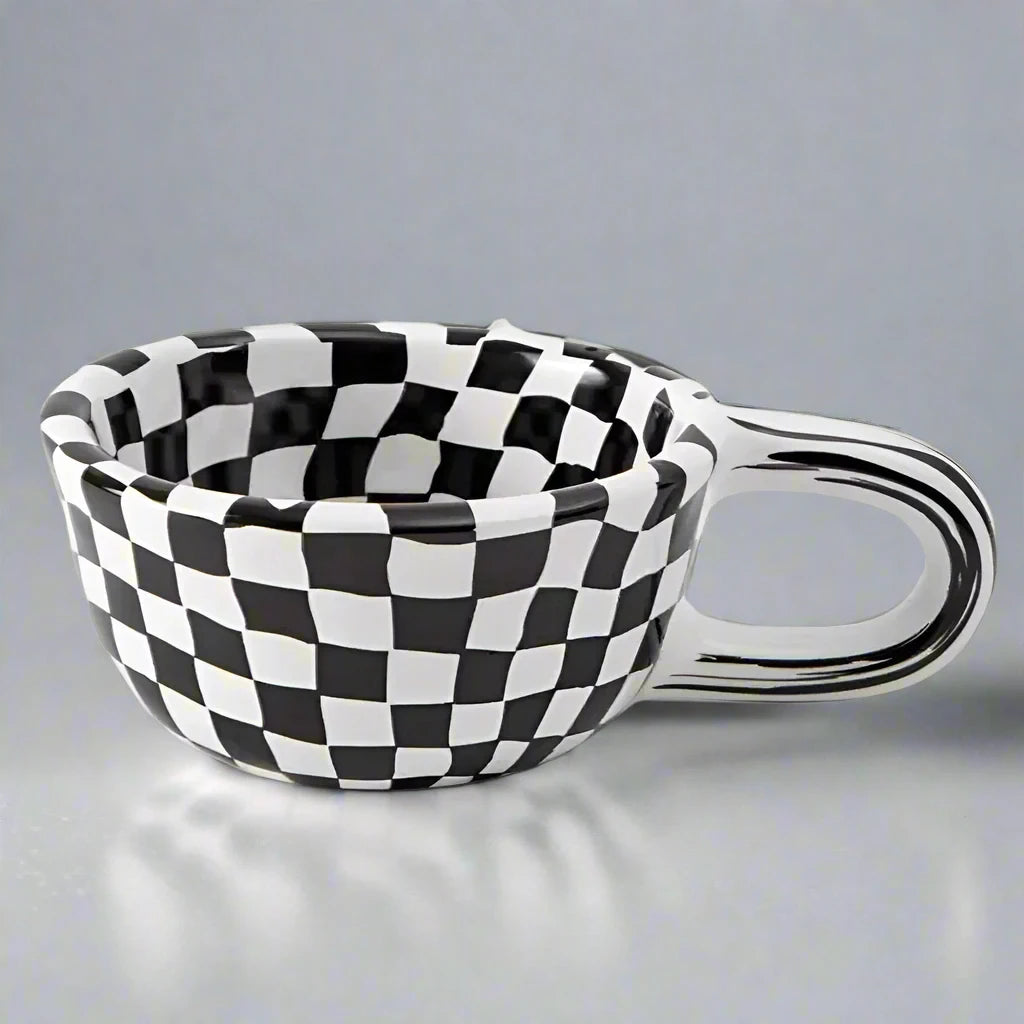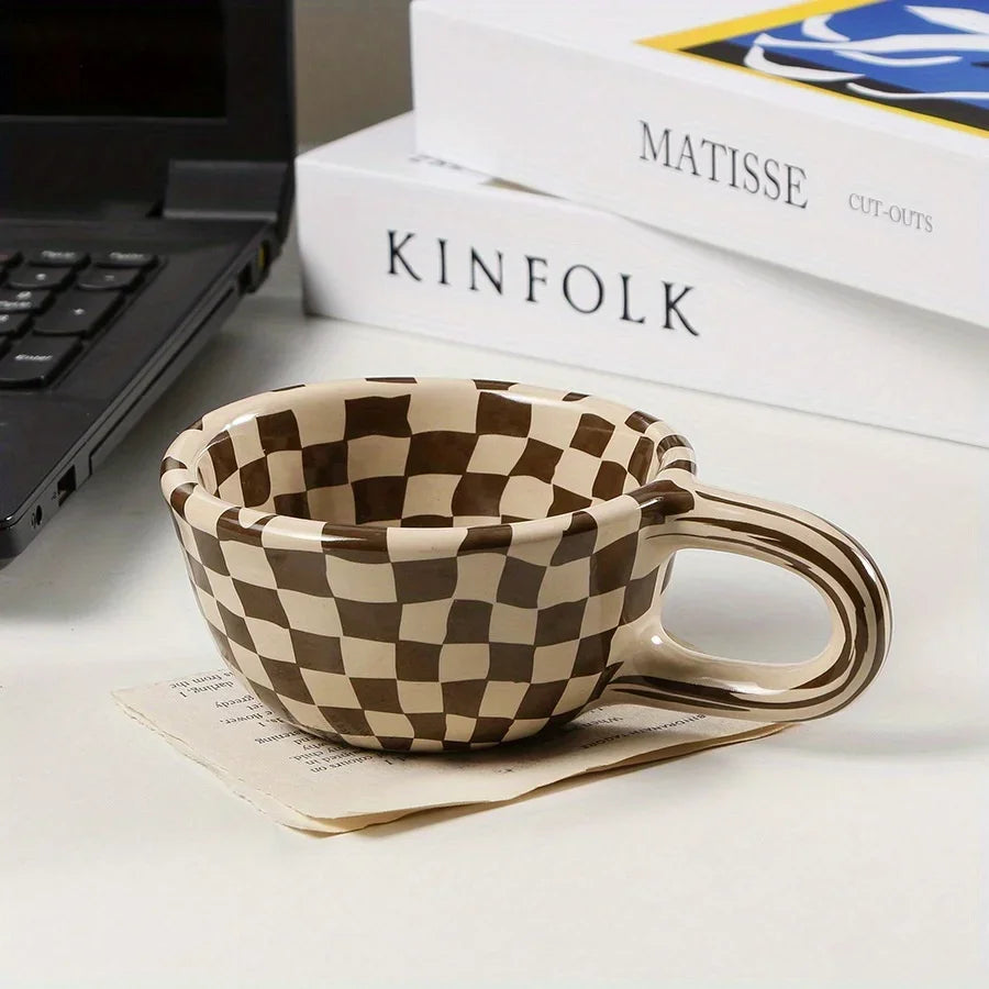 Classic plaid pattern of this beautiful cup brings a retro vibe to your mornings, made from heat-resistant ceramic, perfect for hot drinks while making every sip a joy.